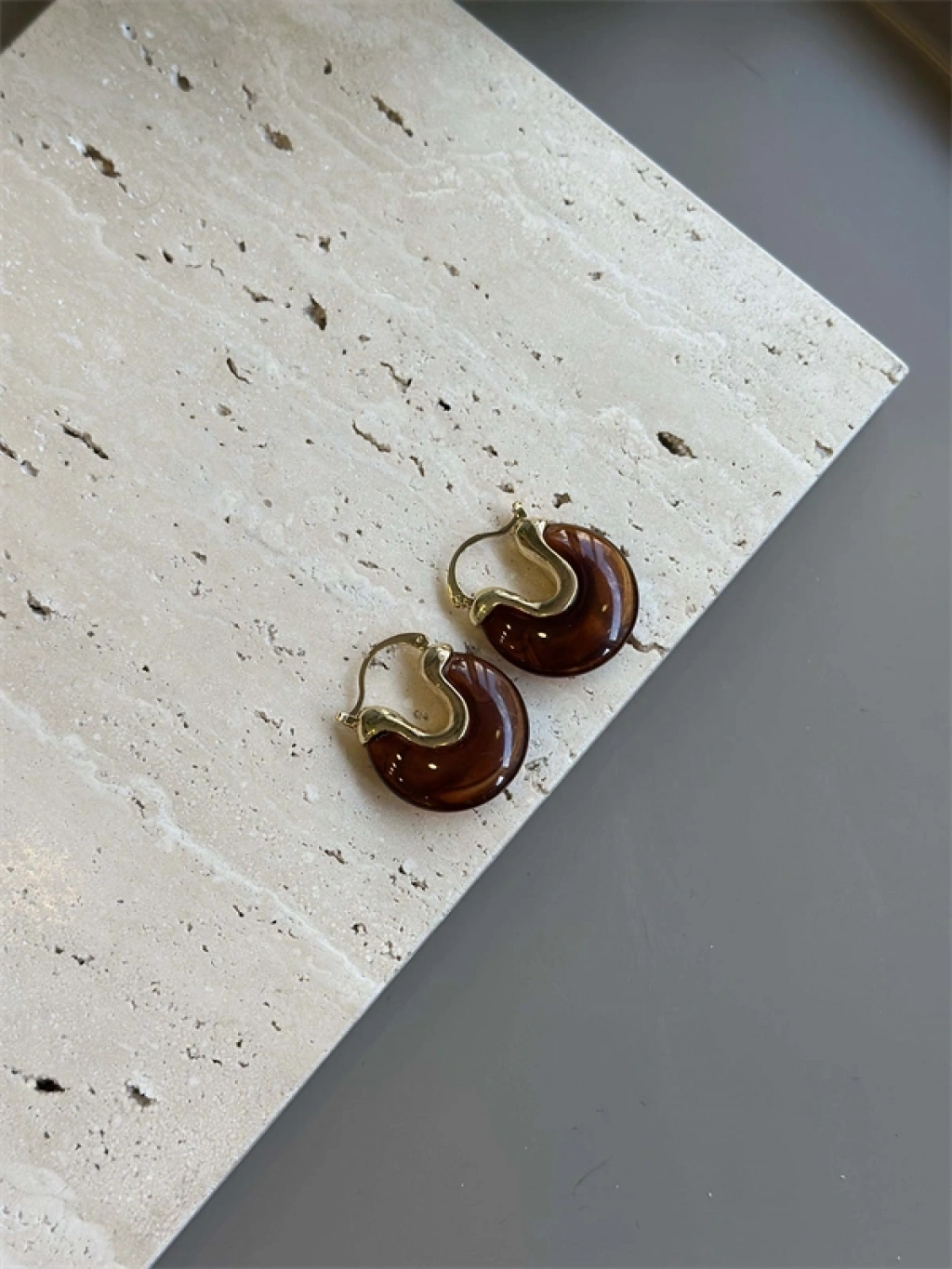 Taşlı Küpe - Kahverengi