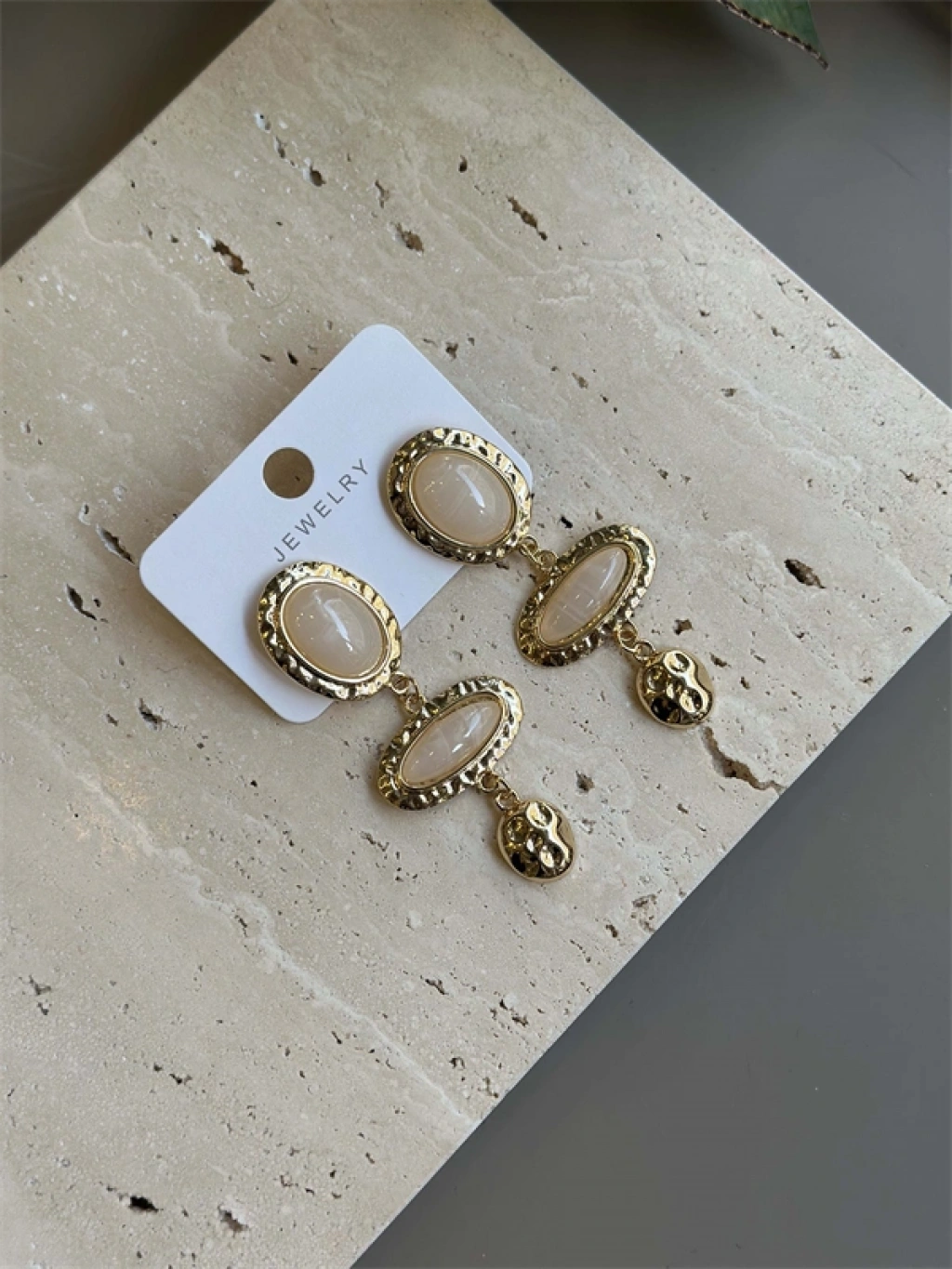 Taşlı Küpe - Krem