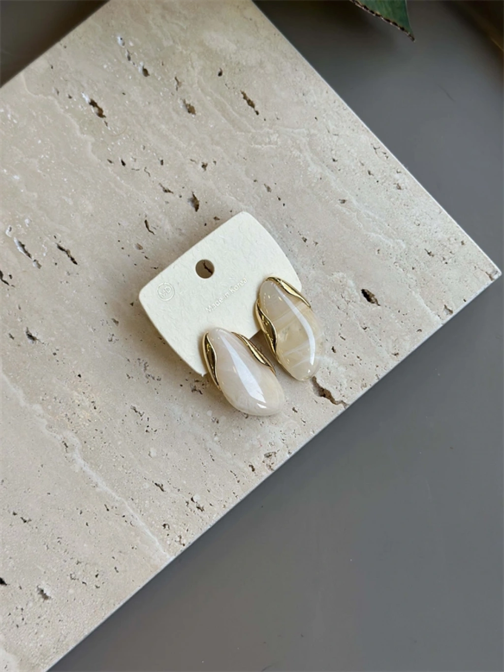 Taşlı Küpe - Krem