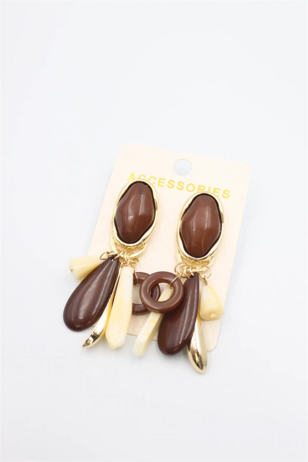 Taşlı Küpe - Kahverengi