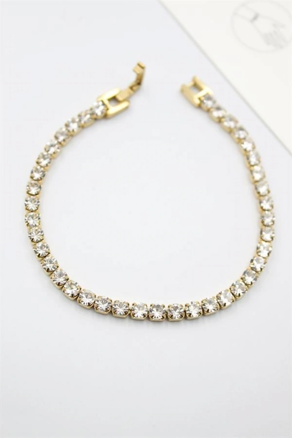 Taşlı Su Yolu Çelik Bileklik - Altın