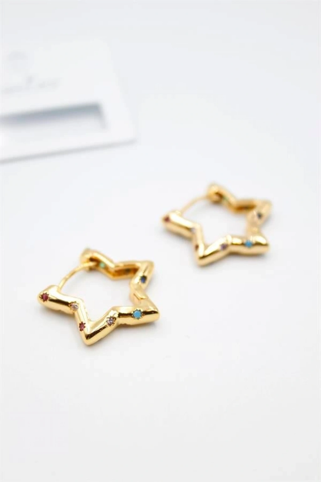 Taşlı Yıldız Küpe - Altın