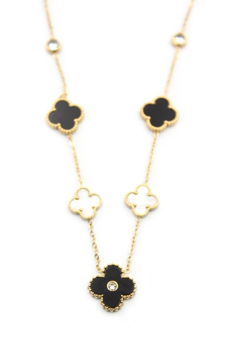 Taşlı Yonca Kolye - Altın