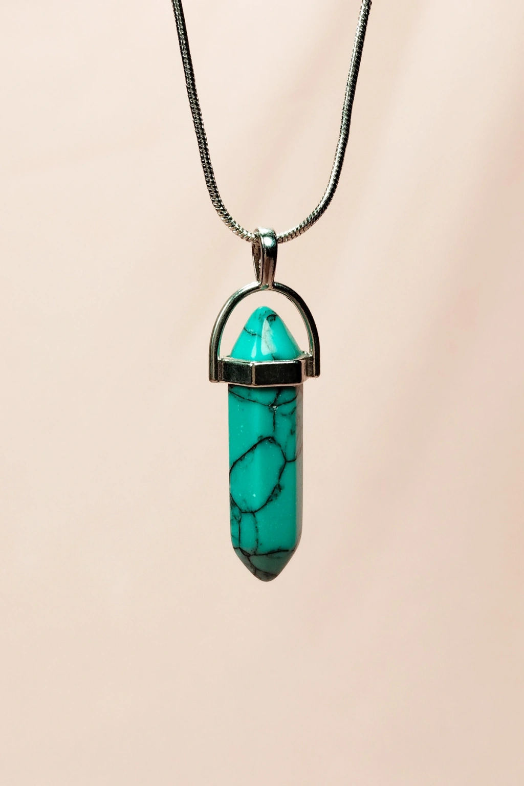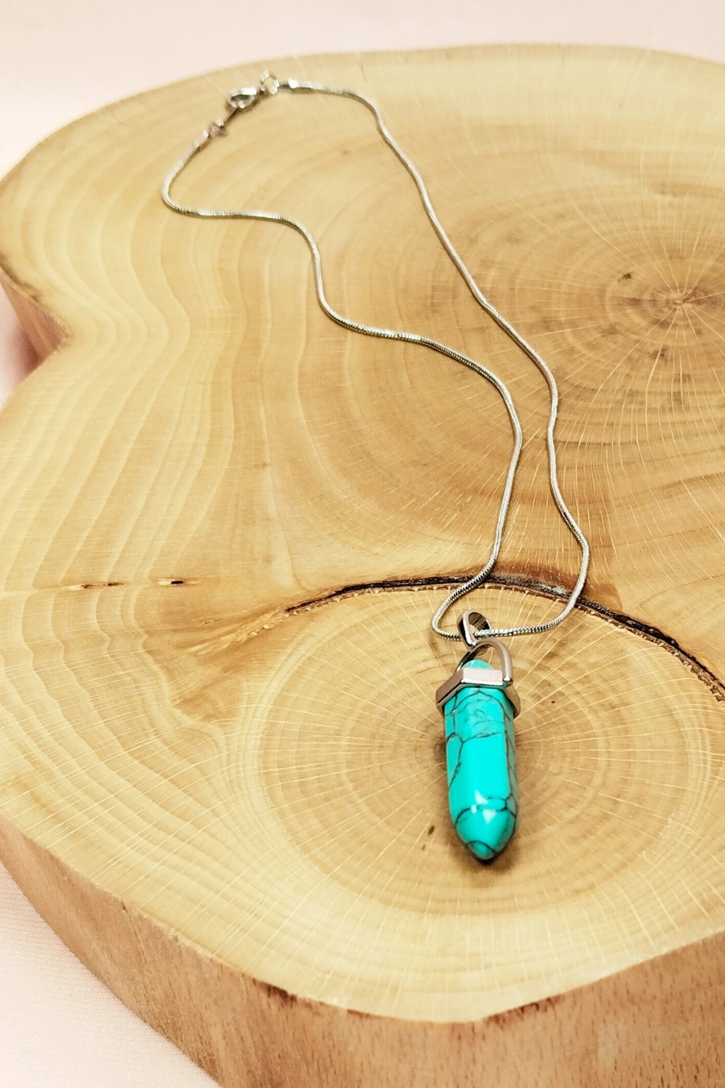 Turkuaz Doğal Taşı Zincirli El Yapımı Kolye Uç: 3 cm Zincir: 20 cm Kutulu