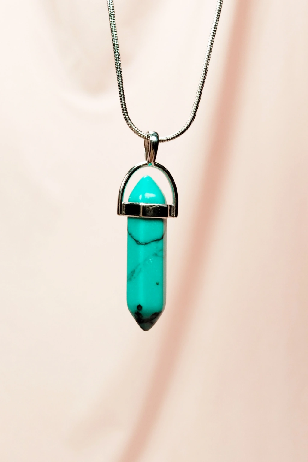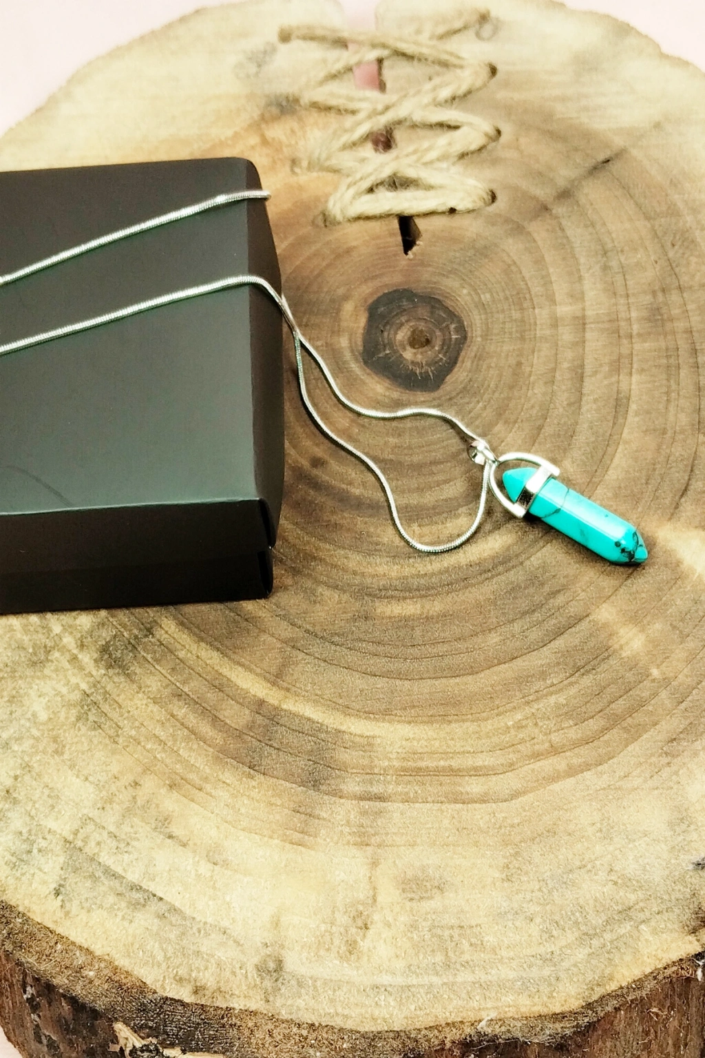 Turkuaz Doğal Taşı Zincirli El Yapımı Tasarımlı Kolye Uç: 3,5 cm Zincir: 20 cm Kutulu