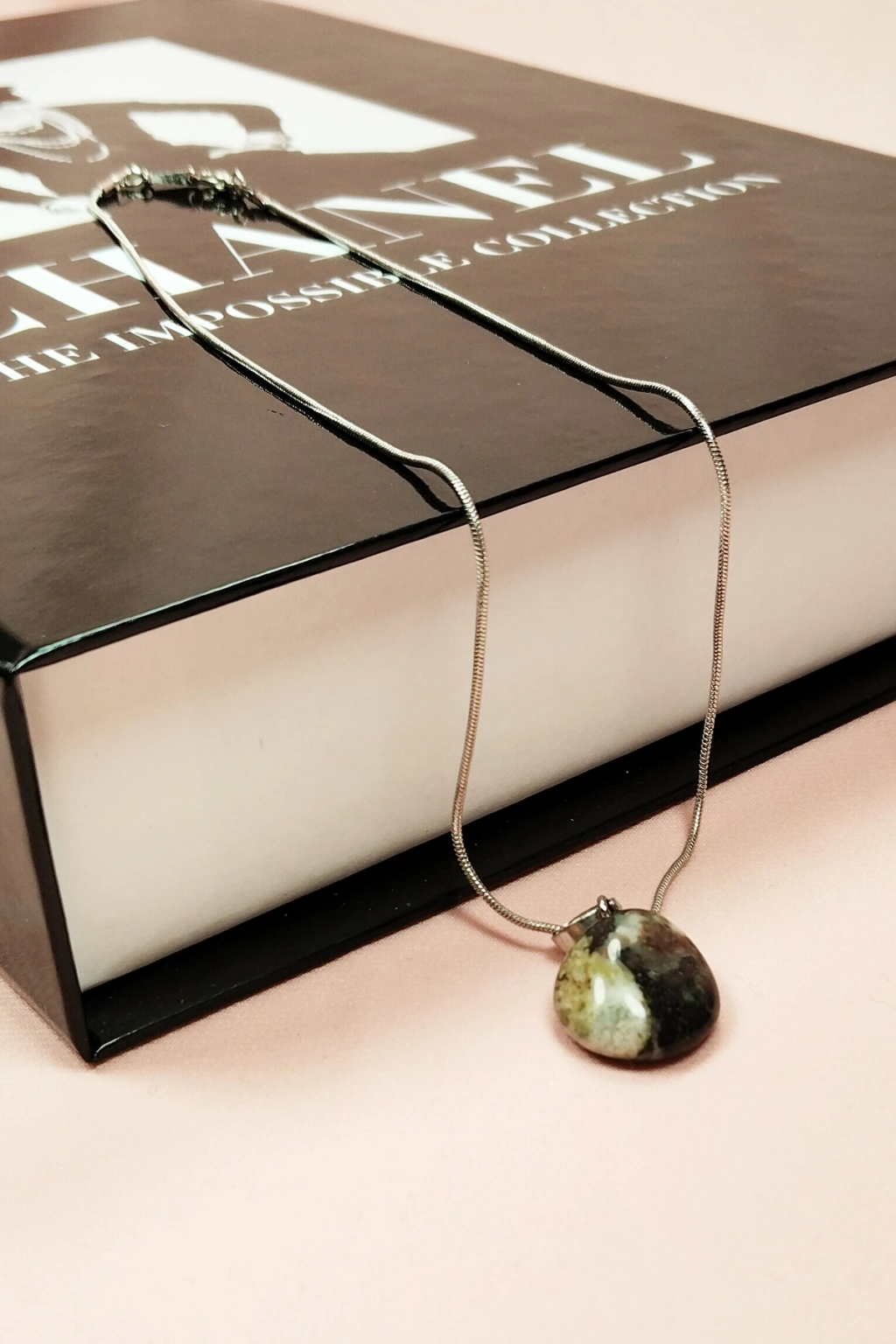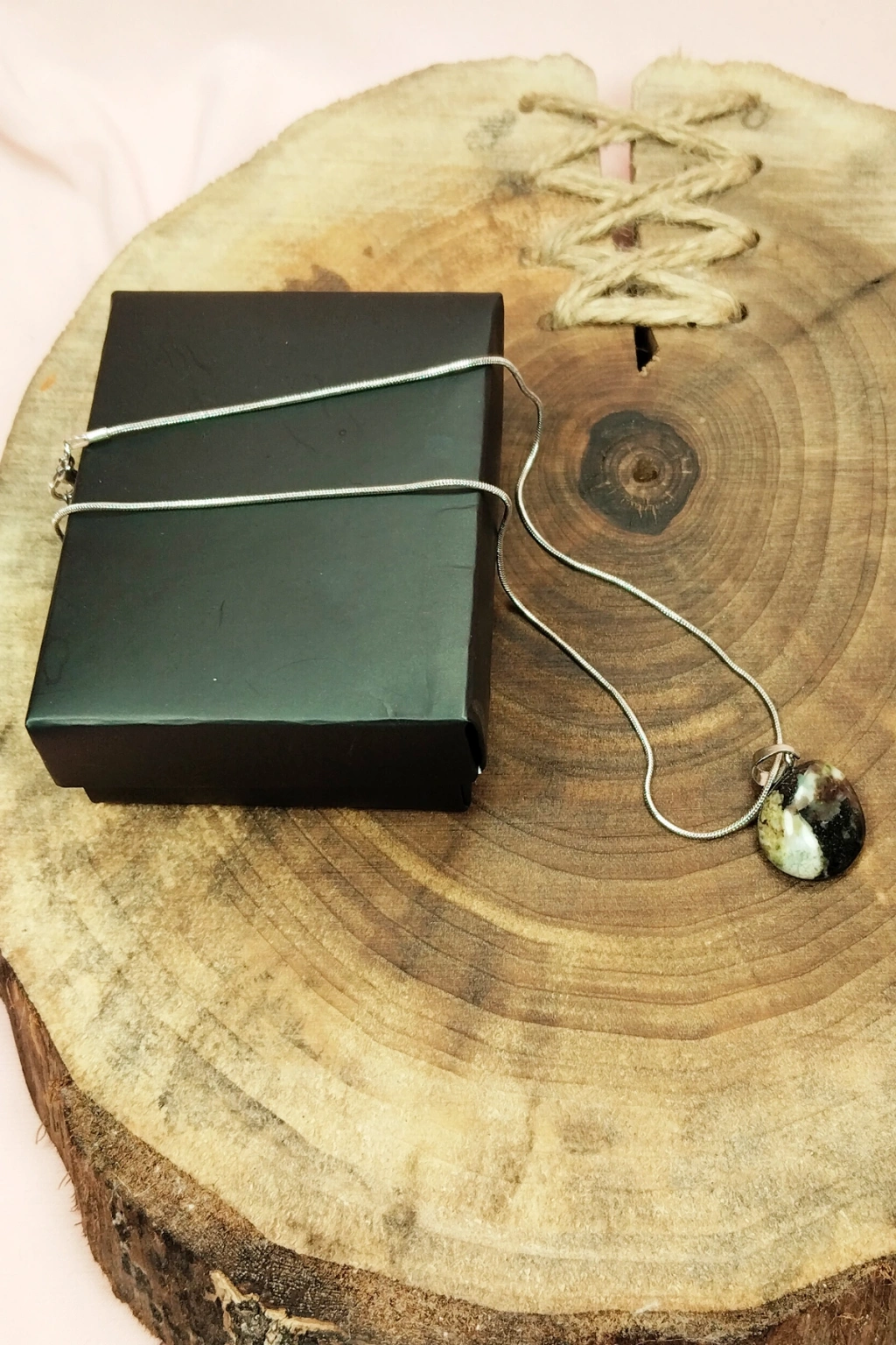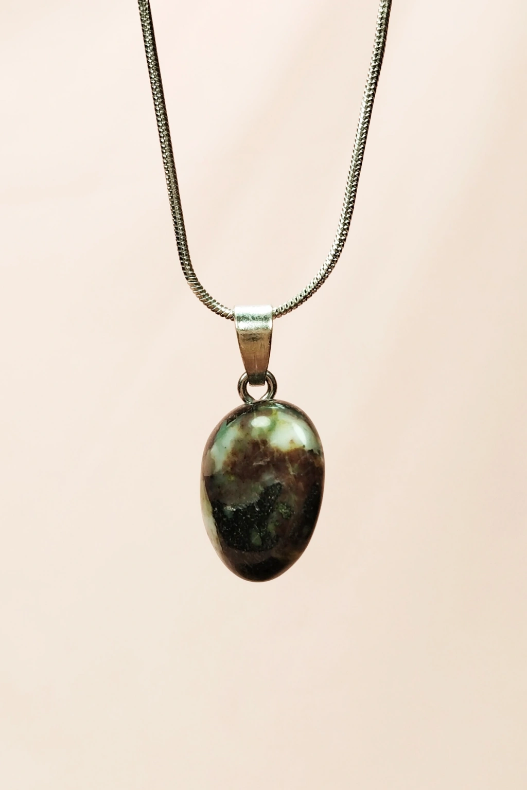 Unakit Doğal Taşı Zincirli El Yapımı Tasarımlı Kolye Uç: 3,5 cm Zincir: 20 cm Kutulu