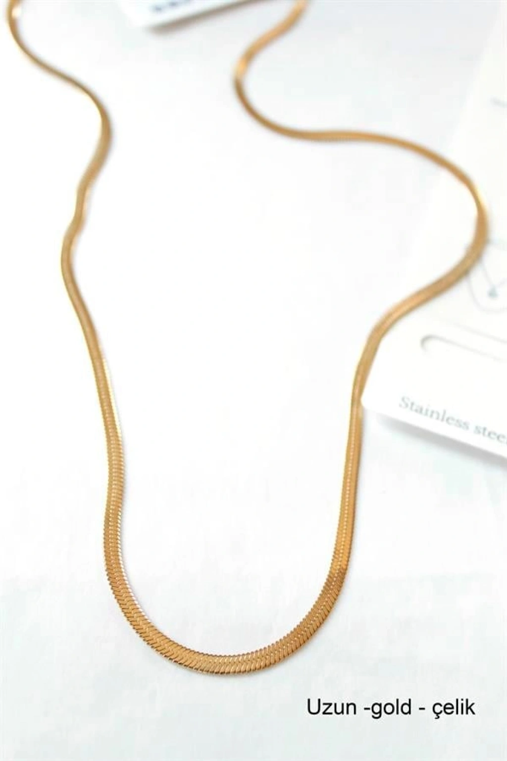 Uzun İtalyan Çelik Kolye-60cm - Altın