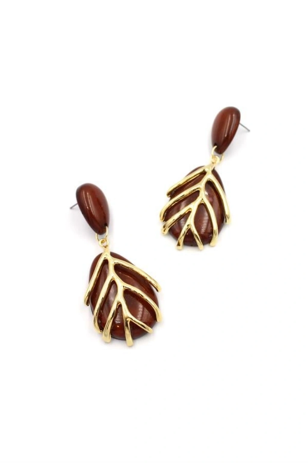 Yaprak Küpe - Kahverengi
