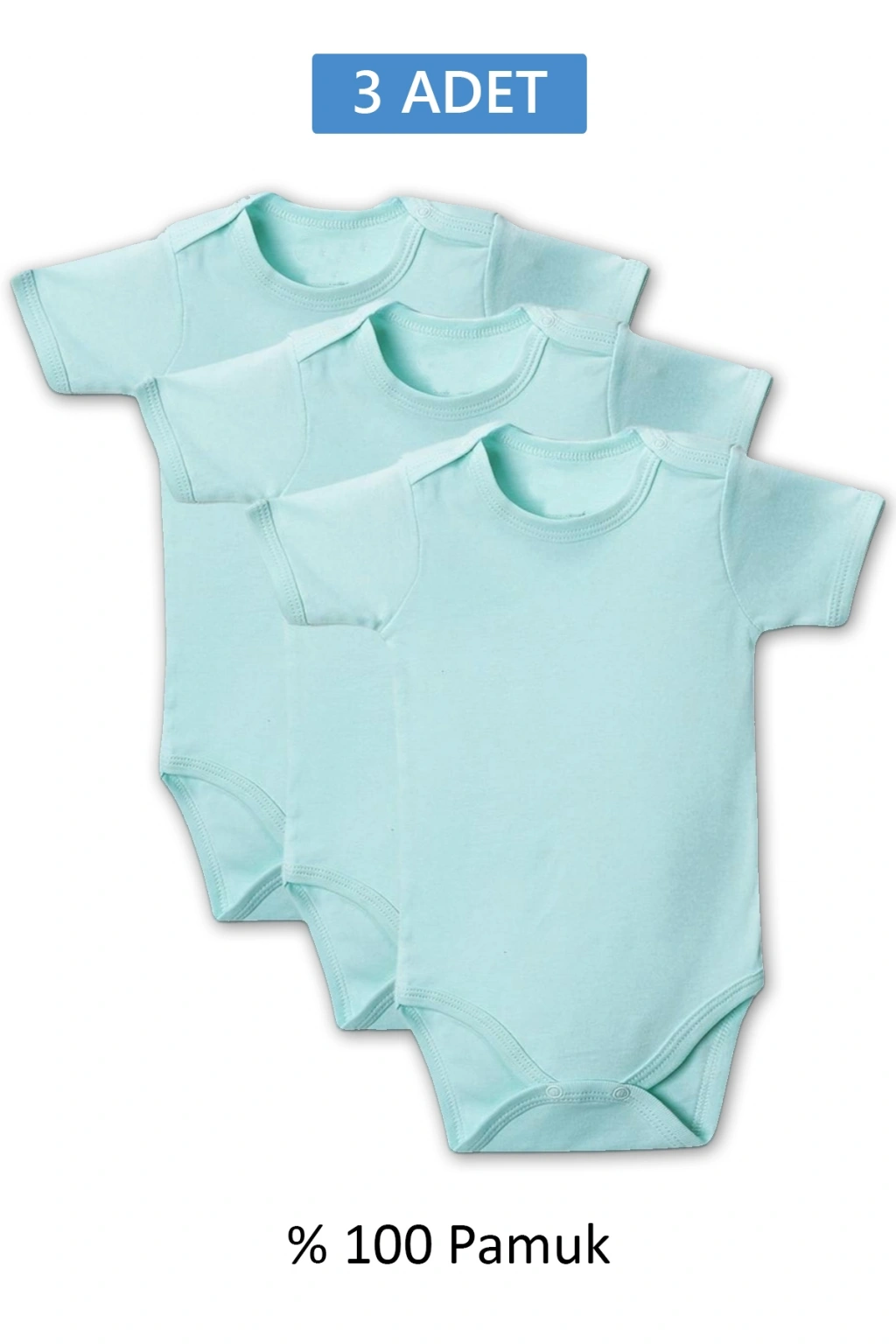 Yeşil Yarım Kol Body Zıbın 2-7 YAŞ Çocuklar İçin (3 ADET) Alttan Çıtçıtlı Özel Gereksinimli