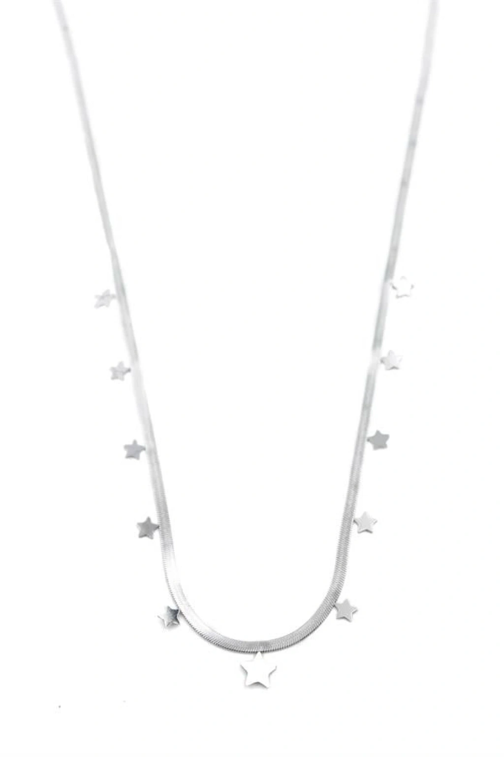 Yıldız Ezme Zincir Kolye - 45cm - Gümüş