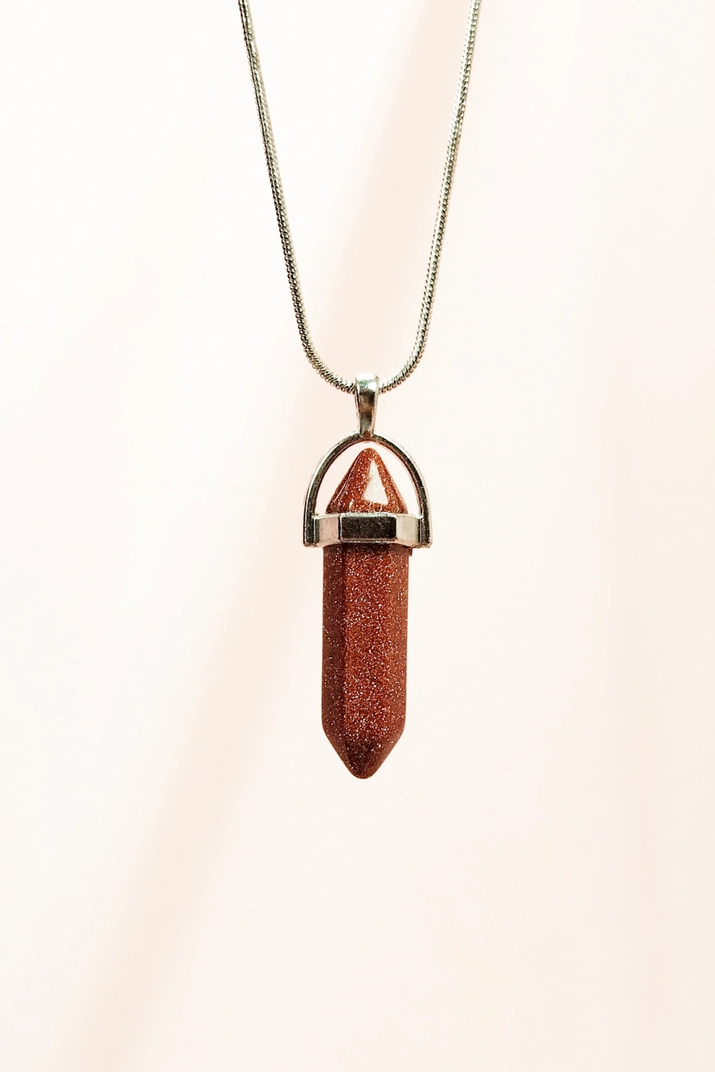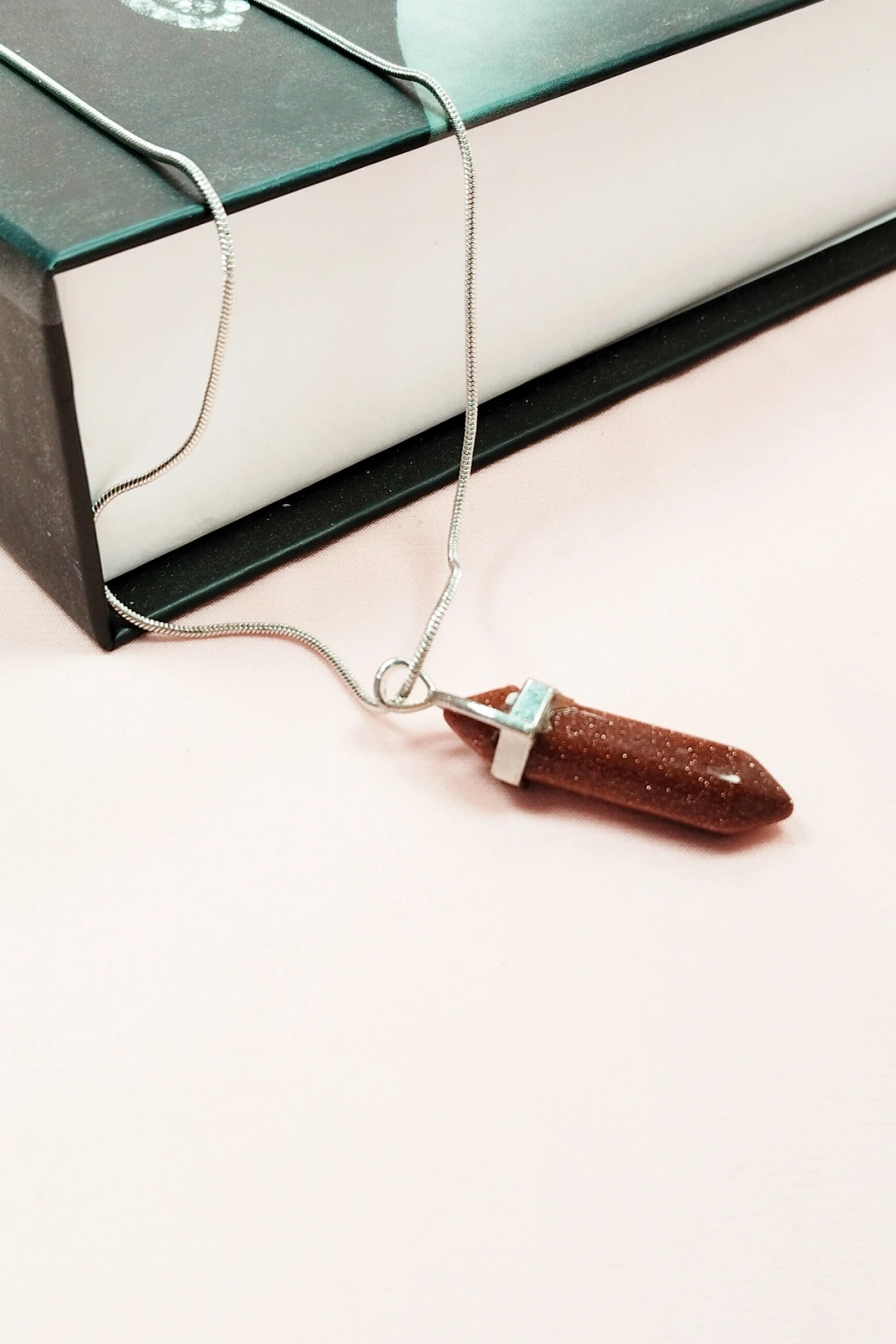 Aventurin Doğal Taşı Zincirli El Yapımı Kolye Uç: 2 cm Zincir: 20 cm Kutulu