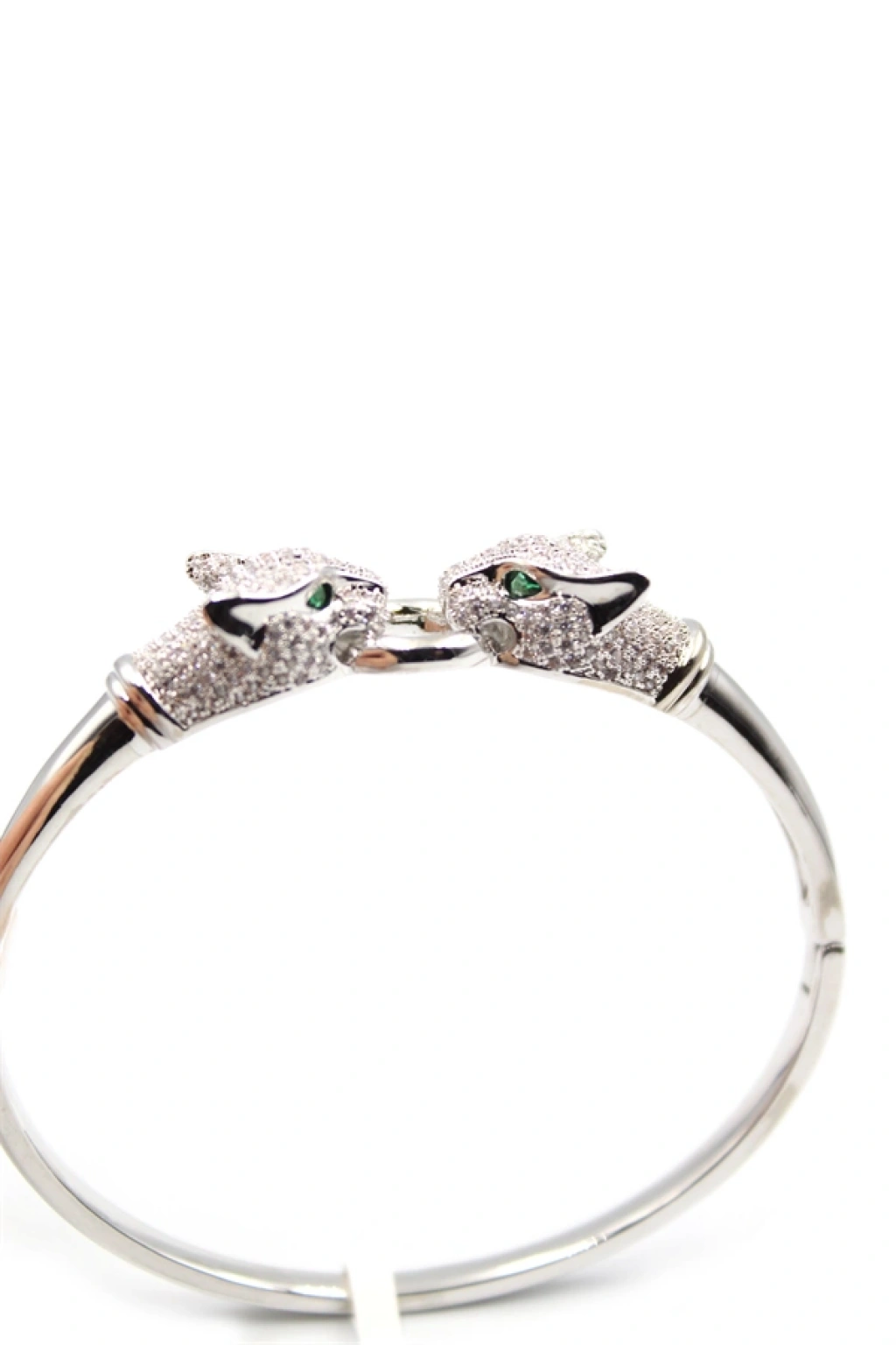 Zirkon Taşlı Leopar Bilezik - Gümüş